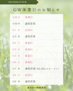 GW休業日のお知らせ